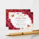 Red gold Quinceanera reception details enclosure cards. Features, script font, gold butterflies, watercolor roses and tiara. Perfect for an elegant princess style glam celebration. Personalize with your own details.