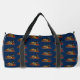Red Gold Steam Train for Railroad Fan on Blue Duffle Bag