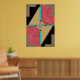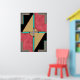 "Quad" features bold geometric symmetry with vibrant gold, aqua, and coral tones set against a sleek black backdrop. Its sharp lines and retro-futuristic aesthetic blend Art Deco and modern abstraction, making it a striking piece for lovers of sophisticated, geometric wall art.