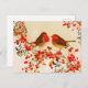 Red Gold Winter Birds Holly Berry Branches Holiday Postcard