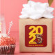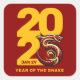 Celebrate the Year of the Snake in 2025 with these stickers, which feature the year 2025 styled in a bold bright yellow font, and AI-generated artwork of a stylized Asian serpent artistically standing in for the number 5 on a royal red background. Customize messaging as desired.