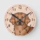 Destei's original cartoon illustration of a cute mahogany red coat colour Golden Retriever breed dog's head close-up. The background colour is light reddish beige with a decorative texture. The texture can be removed and the background colour can be changed to any other colour, if so wished. The hours are marked with numbers. The hours and minutes are shown with a dotted clock face.