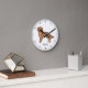 Destei's original cartoon illustration of a cute red mahogany or reddish brown coat colour Golden Retriever breed dog. The clock face is made of simple modern lines. There is also a personalizable text area for a name or other custom text.