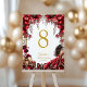 Red Golden Tiara Floral Quinceañera Table Number