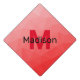 Red gradient geometric mesh pattern Monogram Graduation Cap Topper