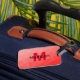 Red gradient geometric mesh pattern Monogram Luggage Tag