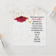 Red mortarboard in gold confetti on soft white textured background for a graduation party invite.