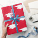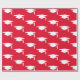 NewParkLane- Red Graduation Wrapping Paper, with a pattern of little white graduation caps.