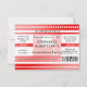 L'invitation au style de billet Red Festive est entièrement personnalisable pour votre événement ou occasion. Utilisez-le pour une fête de remise de diplômes ou tout événement. Arrière - plan rouge avec divisions et sections blanches, avec un ordinateur imprimer du texte de style numérique.