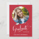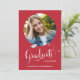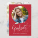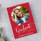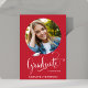 Celebrate your graduate with this modern graduation photo invitation featuring a red school colours theme and stylish calligraphy script! This elegant typography design includes a photo collage template, perfect for showcasing high school or college memories. Ideal for any grad party, this invite is a classy and personalized way to announce your big day.