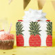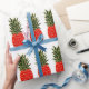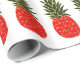 This stylish holiday wrapping paper features red, green, and faux gold pineapples on a white background.