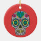 Red Green and Grey Crystal Day of Dead Ceramic Ornament