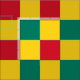 Red, green and yellow chequerboard pattern fabric