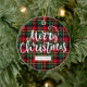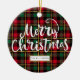 Red, Green, Black & Gold Christmas Plaid Ceramic Ornament