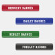 Sporty back to school waterproof labels in red, blue, green, and matte black with your children's names in an athletic font.