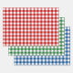 Trio of holiday gingham plaid in red, green and blue.