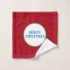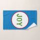Grands cercles géométriques brillants avec Joyeux Noël, Joy, 'C'est la saison à être Joyeux écrit à l'intérieur des cercles blancs enneigés. Décor de salle de bain festive motif en rouge, vert, bleu blanc. Design original par TamiraZDesigns.