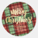 Red Green Buffalo Plaid Merry Christmas Classic Round Sticker