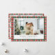 Wish friends family Happy Holidays with a landscape red & green plaid Christmas photo Christmas card showcasing your family on the front over a watercolor red and green Christmas plaid pattern, and a back side with 3 family pictures and an editable note and a cute little Christmas teddy bear.