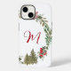 Red Green Floral Monogram Christmas Case-Mate iPhone Case