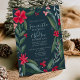 A modern layout with an original green, red and blue floral pattern and wreath illustration with leaves, flourish, flowers and berries and a modern brushed font script typography, perfect for winter and christmas weddings.