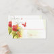 This stylish chic wedding table place card business card has a red and green watercolor floral design with two butterflies flying at the left. At the bottom, there is a soft grey silhouette of some water lily flowers. In the background, there is a soft green distressed look. On the right, you can write in at home the name of the guest and the table number that they are sitting at.