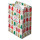 Red Green Gold Christmas Tree Circles Pattern Medium Gift Bag
