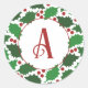 Red & Green Jolly Holly Monogram Classic Round Sticker