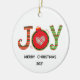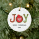 Red Green Joy Christmas Holiday Ceramic ornament. Personalize with saying and year.