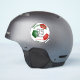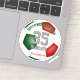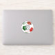 This team colours soccer sticker for boys or girls features the realistic image of a soccer ball that has red, green and white panels - customize the player's name, jersey number, team name and mascot name - by katz_d_zynes