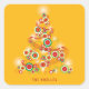 Red & Green Mod Circles Sparkling Christmas Tree Square Sticker