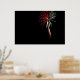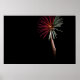 A photograph of a red and green fireworks display that looks like a palm tree.