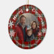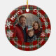 Red green plaid photo white snowflakes ceramic ornament