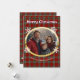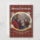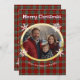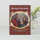 Red green plaid photo white snowflakes faux gold holiday card