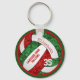 This red, green and white volleyball keychain with custom team and school mascot name features the realistic image of a stylized volleyball that has a floral kaleidoscopic pattern blended with its red and green panels - her name and team name are customizable, as is her jersey number on a tiny white volleyball - by katz_d_zynes | search ALL katzdzynes' red & green volleyball team colours gifts >>>> https://www.zazzle.com/store/katz_d_zynes/products?cg=196889086268408995