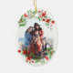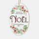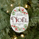 Red & Green Watercolor Floral Noël Photo Christmas Ceramic Ornament