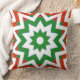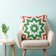 This unique design features a geometric pattern of red and green shapes on a white background, and is printed on both sides of pillows. Some of the shapes look like patterns of stars. It's a great accent for the Christmas holiday season.
