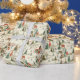 A wintery village background is depicted in this image, showcasing a pattern of trees and houses on a white background. The primary colours present are shades of beige, brown, and grey, with an accent of burnt orange. The scene evokes a sense of winter and outdoor recreation, with references to skiing and pine trees. The composition suggests a ski resort or a snowy landscape with cabins nestled among the trees. The overall aesthetic is cozy and tranquil, inviting viewers to imagine themselves in a peaceful winter setting.