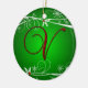 Green background with Red and White Holly and white swirls and snowflakes. Personalize with your own name or other information on the back or leave blank.