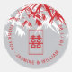 Red & Grey Bamboo Leaves Shuang Xi Chinese Wedding Classic Round Sticker