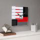Red Grey Black and White Striped Block Square Wall Clock