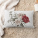 Red Grey & Cream Boho Flower Bouquet Lumbar Pillow