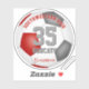 This team colours soccer sticker for boys or girls features the realistic image of a soccer ball that has red, grey and white panels - customize the player's name, jersey number, team name and mascot name - by katz_d_zynes