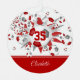 This cool girl's soccer ornament features an "explosion" of varied size soccer balls that have red, grey and white panels, and grey and red star shapes, upon which you can personalize her jersey number - the red star has a tiny pattern of white polka dots - customize the athlete's name on the front & commemorative year on the back on a red colour strip at the bottom edge of the ornament - katz_d_zynes