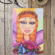 This image is from my original colour pencil drawing. This red haired fairy with purple wings is holding her bouquet of colourful spring flowers. The background is a mixture of blue, yellow and purple. See my store for other products with this design.