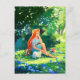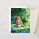 Red-haired Girl with a White Cat Postcard