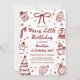 Red Hand Drawn Christmas Merry Little Birthday Invitation