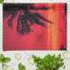 Red Hawaiian Sunset Exotic Palm Trees Kitchen Towel