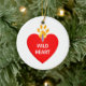Red heart and golden paw with calligraphy on white Christmas Ornament.