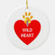 Red heart and golden paw on white Christmas Ceramic Ornament